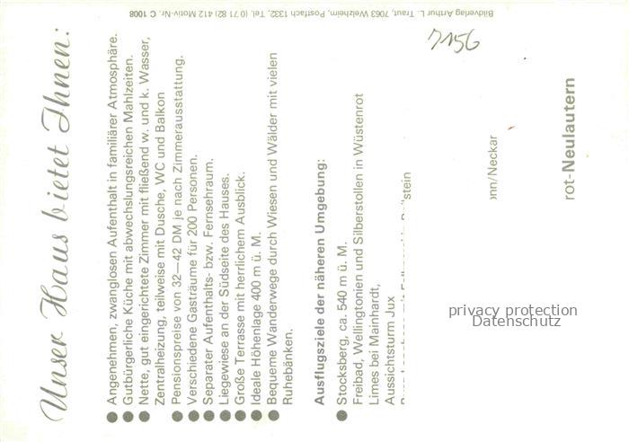 74052738 Neulautern Cafe Waldeck Gastraeume Terrasse postalisch nicht gelaufen Werbekarte (keine Postkarte) Erhaltung siehe scans [WerneD78] KatCode: 11110008125107