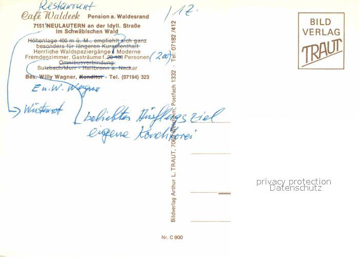 72785605 Neulautern Cafe Waldeck postalisch nicht gelaufen Erhaltung siehe scans [AndreD76] KatCode: 11110008125107