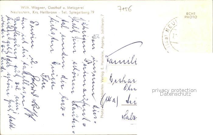 31727910 alte Postkarte Neulautern Wilh. Wagner Gasthof postalisch gelaufen Erhaltung siehe scans KatCode: 11110008125107