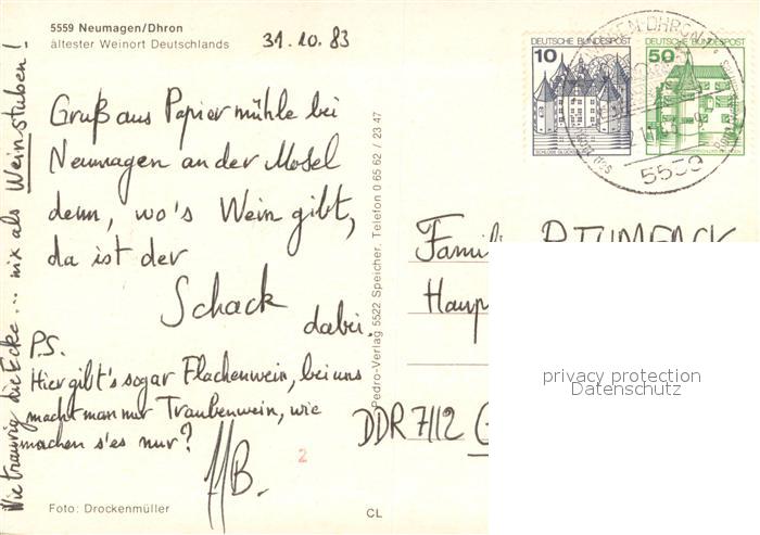 73671424 alte Postkarte Neumagen-Dhron Panorama Blick ins Moseltal Campingplatz Weinschiff Minigolf postalisch gelaufen Erhaltung siehe scans [FriedD77] KatCode: 11110007231092
