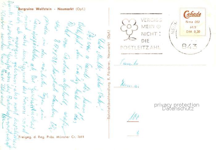 73584671 alte Postkarte Neumarkt Oberpfalz Fliegeraufnahme Burgruine Wolfstein postalisch gelaufen Erhaltung siehe scans [LiesaD40] KatCode: 11110009373147
