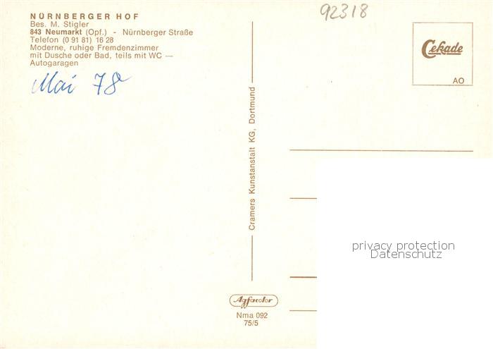73867174 Neumarkt Oberpfalz Hotel Nuernberger Hof Restaurant postalisch nicht gelaufen Erhaltung siehe scans [FriedD77] Frie Katcode 11110009373147
