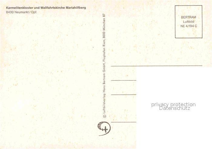 72872538 Neumarkt Oberpfalz Karmelitenkloster Wallfahrtskirche Mariahilfberg Fliegeraufnahme postalisch nicht gelaufen Erhaltung siehe scans [FriedD77] KatCode: 11110009373147