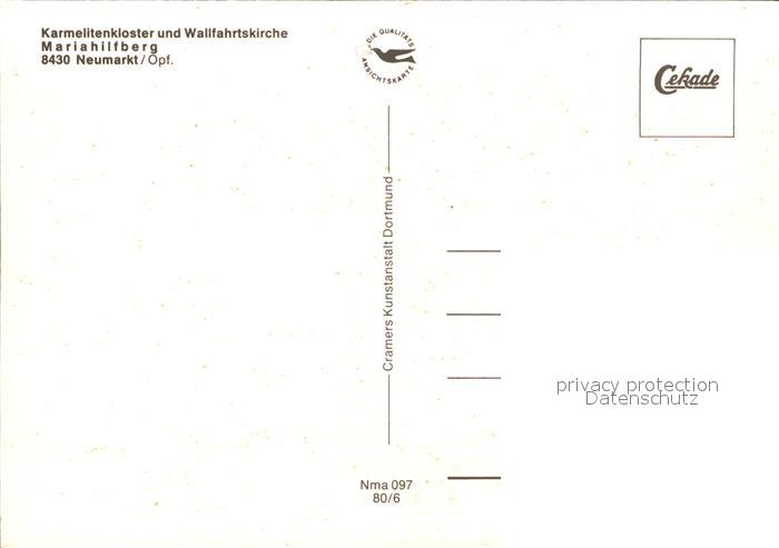 71928952 Neumarkt Oberpfalz Karmelitenkloster Wallfahrtskirche Mariahilfberg postalisch nicht gelaufen Erhaltung siehe scans KatCode: 11110009373147