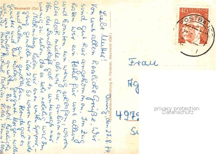 72739048 alte Postkarte Neumarkt Oberpfalz Mariahilfberg Ruine Wolfstein Pulverturm Marktplatz Tiroler Hof postalisch gelaufen Erhaltung siehe scans [FriedD77] KatCode: 11110009373147