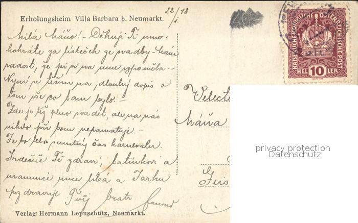 12354346 alte Postkarte Neumarkt Steiermark Erholungsheim Villa Barbara postalisch gelaufen Erhaltung siehe scans KatCode: 11390226061412