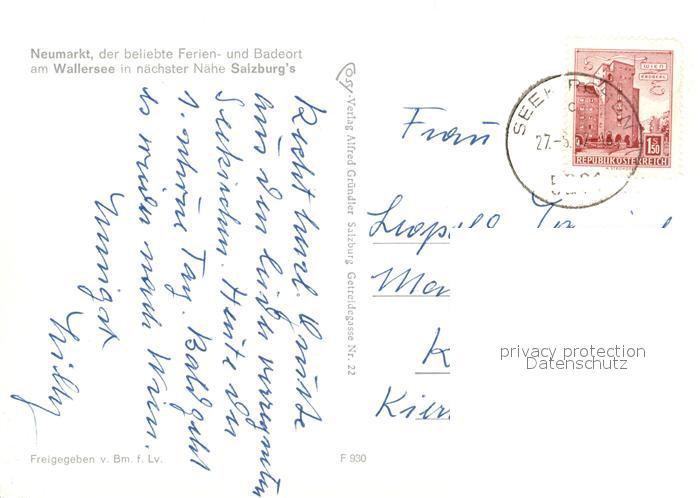 73587171 alte Postkarte Neumarkt Wallersee Fliegeraufnahme mit Watzmann Untersberg Reiteralp Gebirge Loferer Steinberge postalisch gelaufen Erhaltung siehe scans [WerneD78] KatCode: 11390323050324