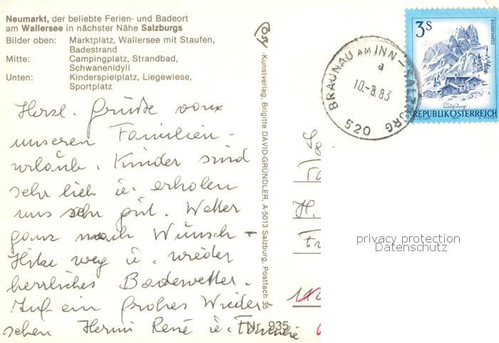 73861088 alte Postkarte Neumarkt Wallersee Marktplatz Wallersee mit Staufen Badestrand postalisch gelaufen Erhaltung siehe scans [WerneD78] KatCode: 11390323050324