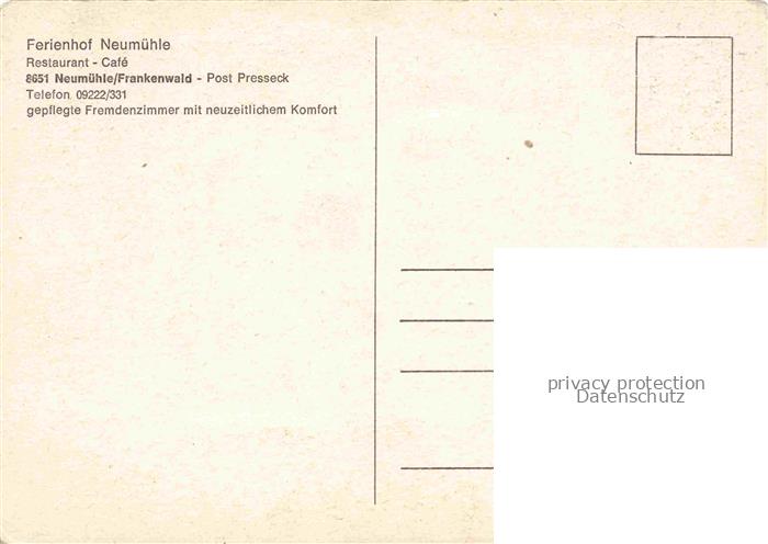 74091450 Neumuehle Frankenwald Presseck Kulmbach Bayern Ferienhof Neumuehle Restaurant Cafe Panorama postalisch nicht gelaufen Erhaltung siehe scans [WerneD78] KatCode: 11110009477148