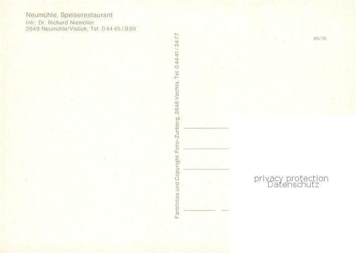 73844612 Neumuehle Visbek Neumuehle Speiserestaurant postalisch nicht gelaufen Erhaltung siehe scans [FriedD77] KatCode: 11110003460010