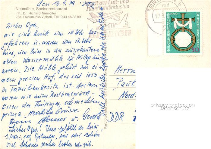 73568848 alte Postkarte Neumuehle Visbek Speiserestaurant postalisch gelaufen Erhaltung siehe scans [FriedD77] KatCode: 11110003460010