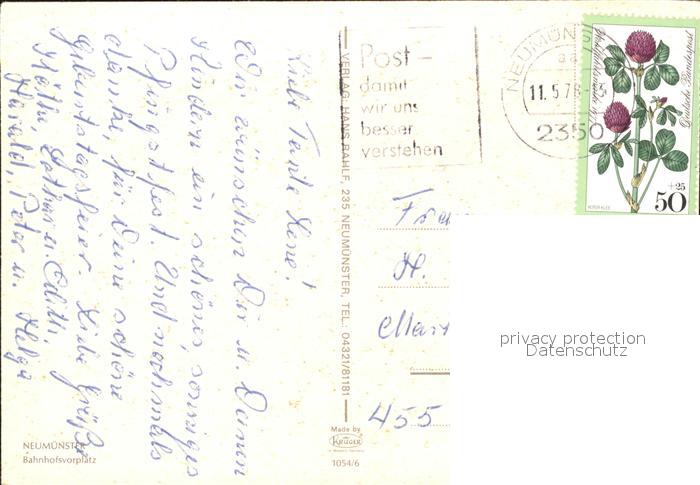 71931131 alte Postkarte Neumuenster Schleswig-Holstein Bahnhofsplatz postalisch gelaufen Erhaltung siehe scans KatCode: 11110001004000