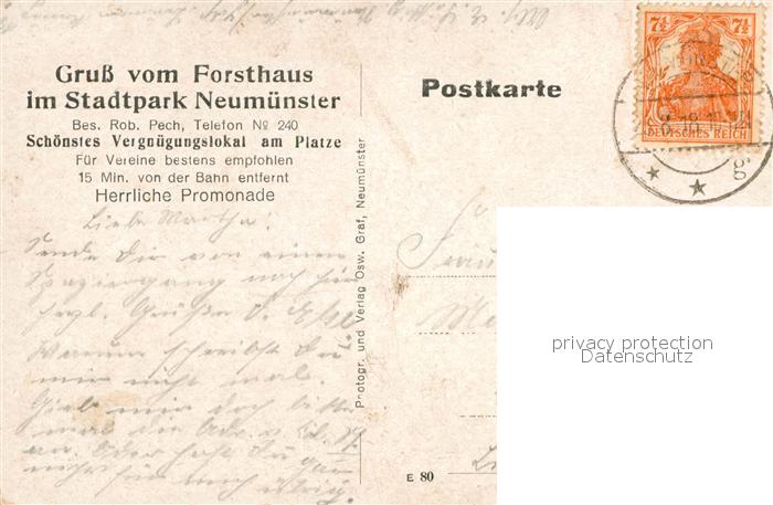32980168 alte Postkarte Neumuenster Schleswig-Holstein Forsthaus im Stadtpark postalisch gelaufen Erhaltung siehe scans [NatalD47] KatCode: 11110001004000
