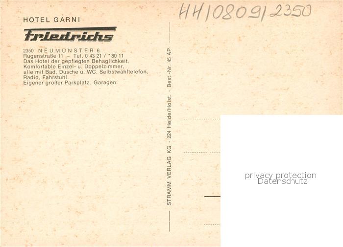 73333117 Neumuenster Schleswig-Holstein Hotel Garni Friedrichs postalisch nicht gelaufen Erhaltung siehe scans [LiesaD40] KatCode: 11110001004000