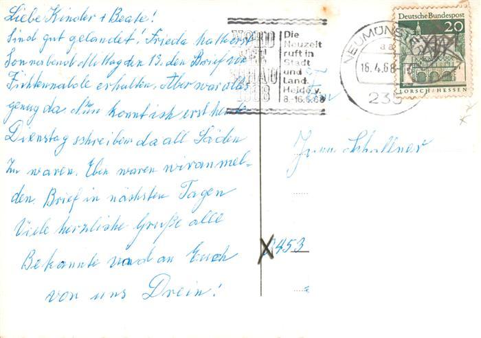 73880483 alte Postkarte Neumuenster Schleswig-Holstein Rathaus Textil Fachschule Europastrasse Heimattlergarten Vicelinkirche postalisch gelaufen Erhaltung siehe scans [WerneD78] KatCode: 11110001004000