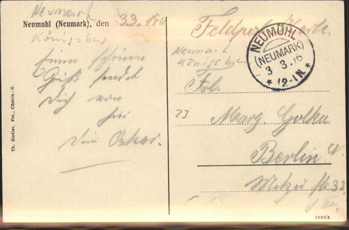 old postcard Neumuhl Oberfoersterei Grahlows Gasthaus postalisch gelaufen