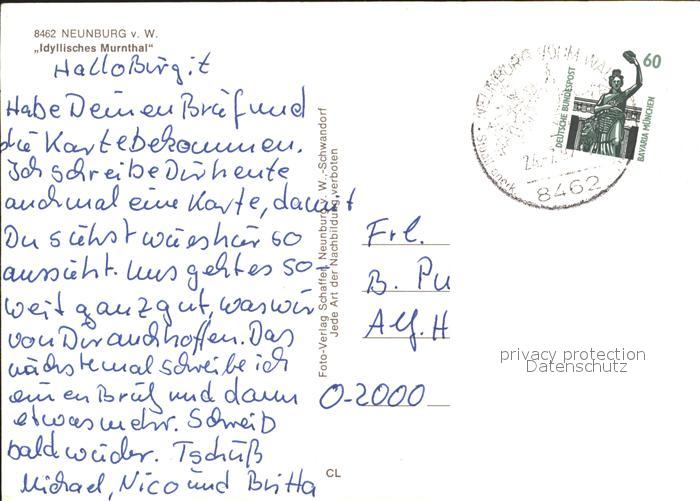 71928102 alte Postkarte Neunburg Wald Idyllisches Murnthal postalisch gelaufen Erhaltung siehe scans KatCode: 11110009376147