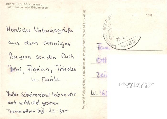 73269621 alte Postkarte Neunburg Wald Panorama Telansichten Schwimmbad postalisch gelaufen Erhaltung siehe scans [WerneD78] KatCode: 11110009376147