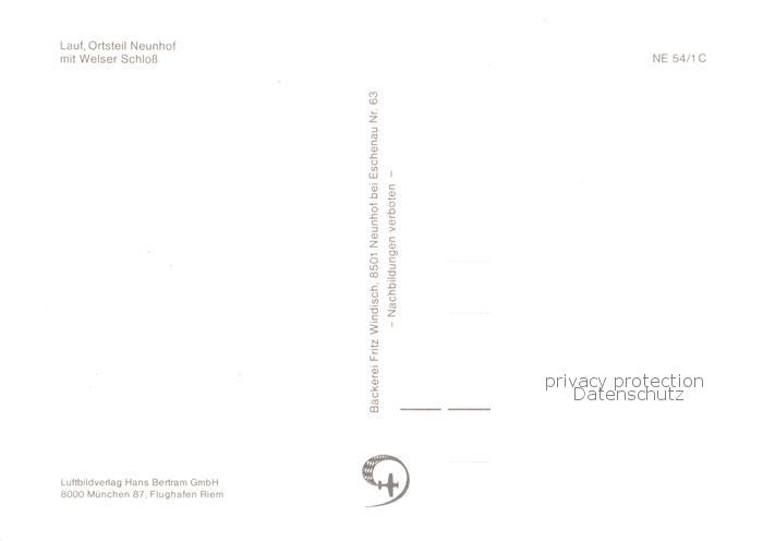 73853531 Neunhof Lauf Ansicht mit Welser Schloss postalisch nicht gelaufen Fliegeraufnahme Erhaltung siehe scans [FriedD77] KatCode: 11110009574138
