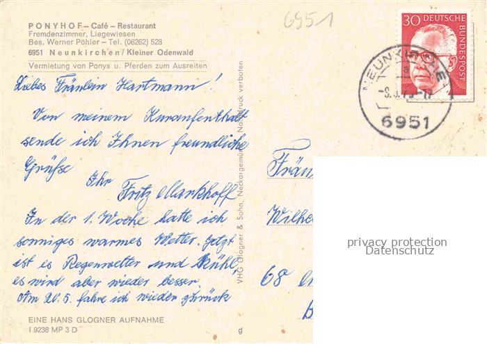 74048260 alte Postkarte Neunkirchen Baden Ponyhof Café Restaurant Ponyreiten postalisch gelaufen Erhaltung siehe scans [FriedD77] KatCode: 11110008225068