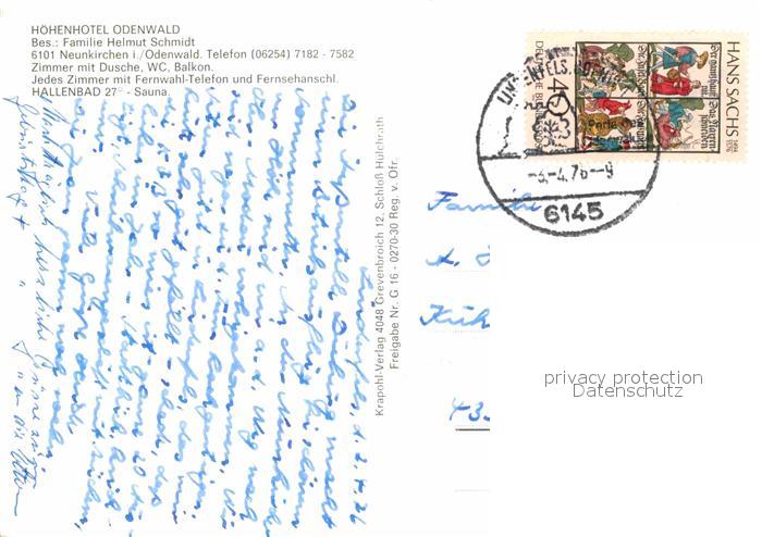 72839324 alte Postkarte Neunkirchen Odenwald Fliegeraufnahme postalisch gelaufen Erhaltung siehe scans [FriedD77] KatCode: 11110006432013