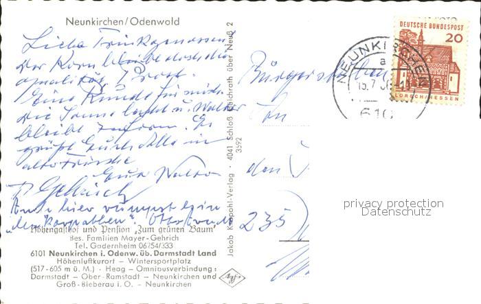 72198784 alte Postkarte Neunkirchen Odenwald Fliegeraufnahme postalisch gelaufen Erhaltung siehe scans KatCode: 11110006432013