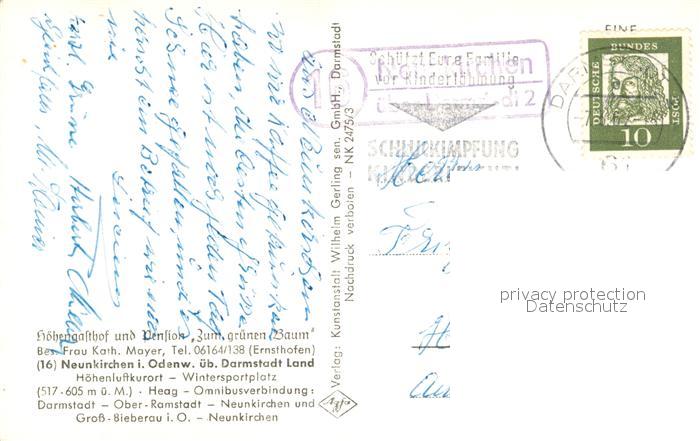 33152382 alte Postkarte Neunkirchen Odenwald Gasthaus Pension Gruenen Baum postalisch gelaufen Erhaltung siehe scans [KathaD81] KatCode: 11110006432013