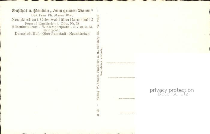 31714839 Neunkirchen Odenwald Gasthaus Pension zum gruenen Baum postalisch nicht gelaufen Erhaltung siehe scans KatCode: 11110006432013