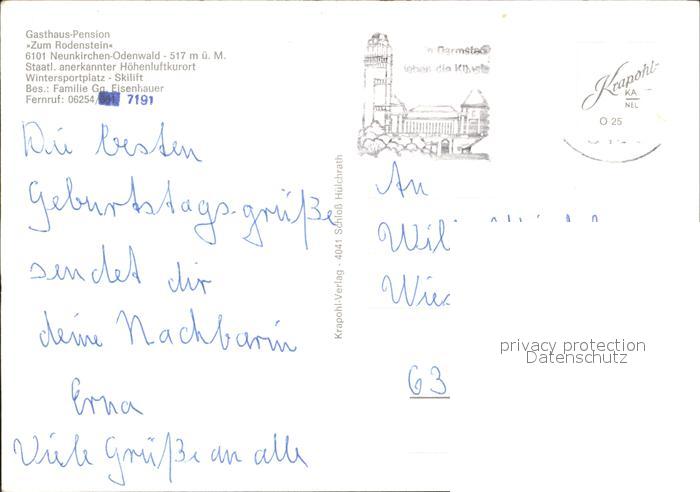 72105733 alte Postkarte Neunkirchen Odenwald Gasthaus Pension Zum Rodenstein Pension Eisenhauer Gaststube postalisch gelaufen Erhaltung siehe scans KatCode: 11110006432013