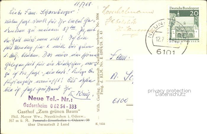 72096748 alte Postkarte Neunkirchen Odenwald Gasthof zum gruenen Baum postalisch gelaufen Erhaltung siehe scans KatCode: 11110006432013