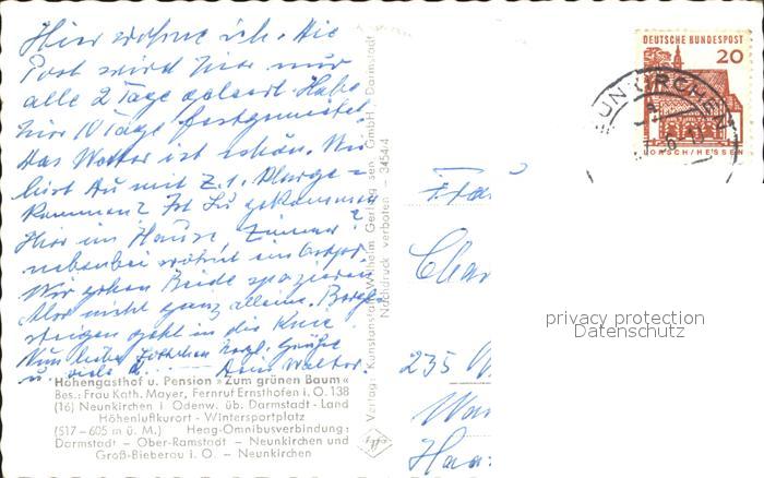 72198783 alte Postkarte Neunkirchen Odenwald Hoehengasthof Zum Gruenen Baum postalisch gelaufen Erhaltung siehe scans KatCode: 11110006432013