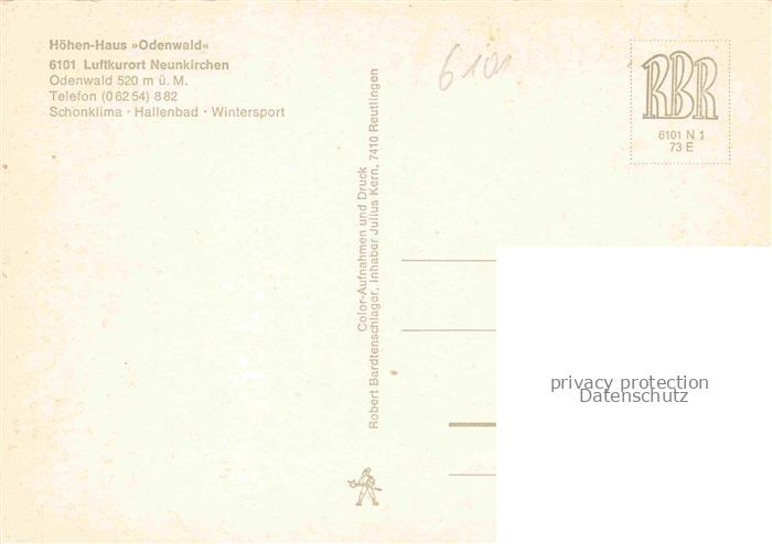 74040717 Neunkirchen Odenwald Hoehenhaus Odenwald Gaststaette Hotel Restaurant postalisch nicht gelaufen Erhaltung siehe scans [FriedD77] KatCode: 11110006432013