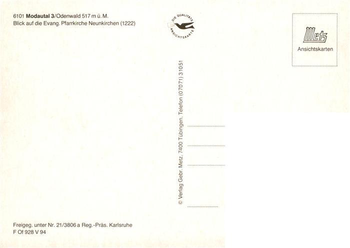 73887264 Neunkirchen Odenwald Modautal Fliegeraufnahme mit Ev Pfarrkirche postalisch nicht gelaufen Erhaltung siehe scans [FriedD77] KatCode: 11110006432013