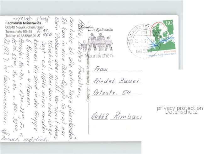 71908056 alte Postkarte Neunkirchen Saar Fachklinik Muenchwies postalisch gelaufen Erhaltung siehe scans KatCode: 11110010043114