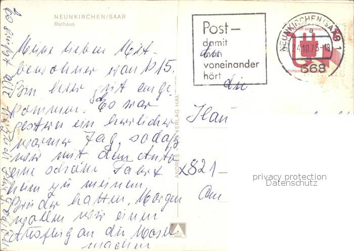 72533482 alte Postkarte Neunkirchen Saar Rathaus postalisch gelaufen Erhaltung siehe scans [WerneD78 kt116box] KatCode: 11110010043114