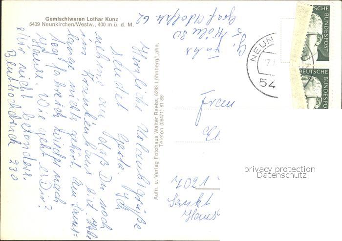72059344 alte Postkarte Neunkirchen Westerwald Ortsansichten Kirche Ruhebaenke postalisch gelaufen Erhaltung siehe scans KatCode: 11110007143271