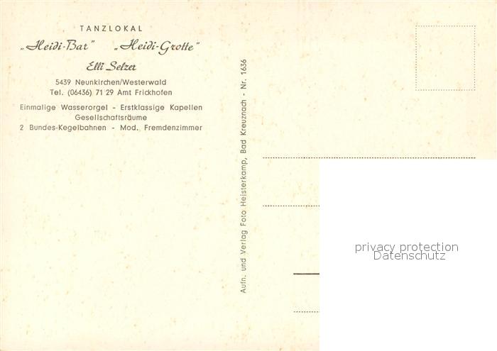 73660970 Neunkirchen Westerwald Tanzlokal Heidi Bar und Grotte Wasserorgel postalisch nicht gelaufen Erhaltung siehe scans [FriedD77] KatCode: 11110007143271
