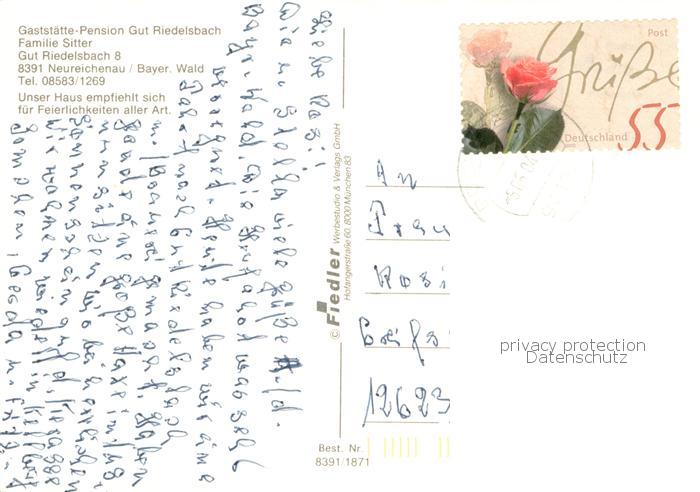 73761301 alte Postkarte Neureichenau Hotel Pension Gut Riedelsbach Wild Viehherde postalisch gelaufen Erhaltung siehe scans [FriedD77] KatCode: 11110009272136
