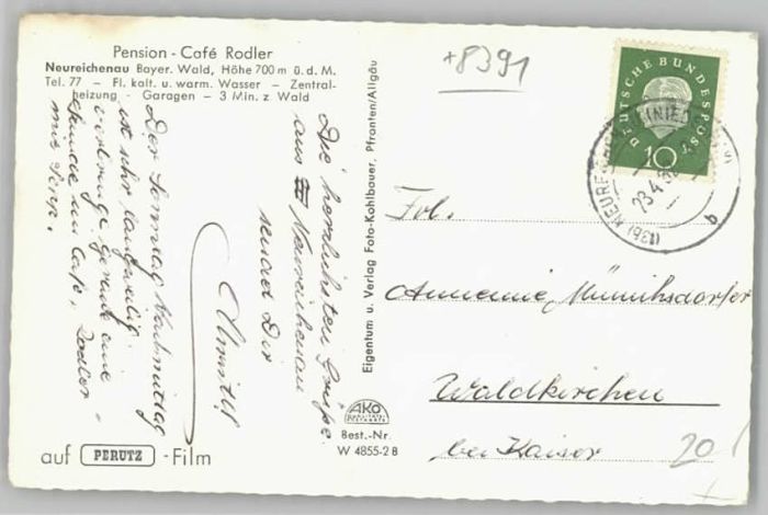 40222629 Neureichenau Pension Cafe Rodler x 1962 KatCode 11110009272136