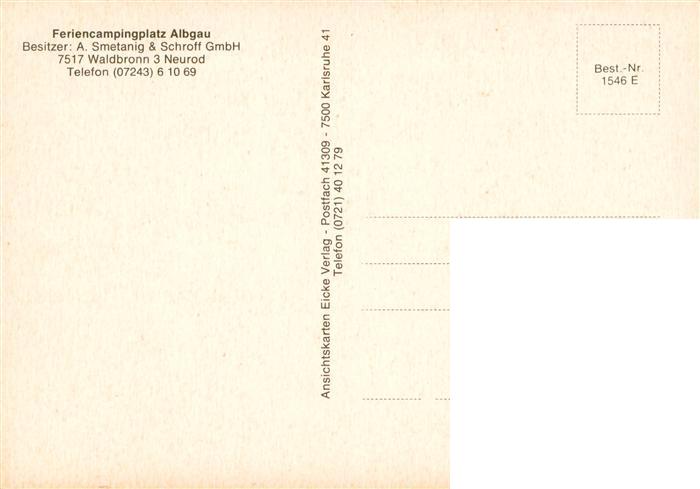 73938344 Neurod Reichenbach Waldbronn BW Feriencampingplatz Albgau postalisch nicht gelaufen Erhaltung siehe scans [WerneD78] KatCode: 11110008215110