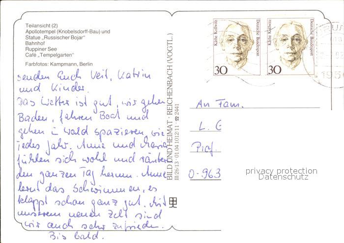 72378494 alte Postkarte Neuruppin Apollotempel Ruppiner See Cafe Tempelgarten postalisch gelaufen Erhaltung siehe scans KatCode: 11110012068320