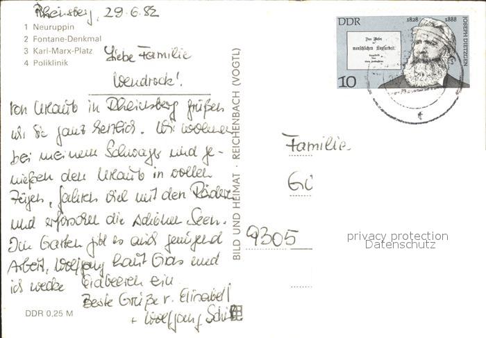 72343542 alte Postkarte Neuruppin Fontane Denkmal Karl Marx Platz Poliklinik Springbrunnen postalisch gelaufen Erhaltung siehe scans KatCode: 11110012068320