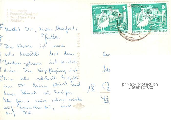 72926729 alte Postkarte Neuruppin Fontane Denkmal Karl Marx Platz Poliklinik postalisch gelaufen Erhaltung siehe scans [AndreD76] KatCode: 11110012068320