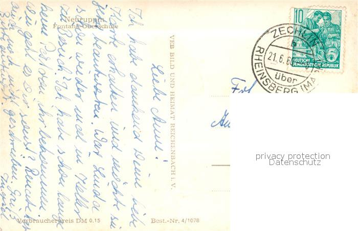 43369397 alte Postkarte Neuruppin Fontane Oberschule postalisch gelaufen Erhaltung siehe scans [FriedD77] KatCode: 11110012068320