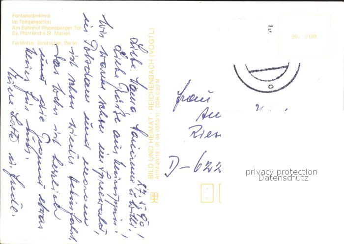 72320162 alte Postkarte Neuruppin Fontanedenkmal Tempelgarten Bahnhof Rheinsberger Tor postalisch gelaufen Erhaltung siehe scans KatCode: 11110012068320