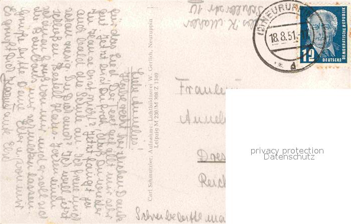 72634179 alte Postkarte Neuruppin Im Tempelgarten postalisch gelaufen Erhaltung siehe scans [AndreD76] KatCode: 11110012068320