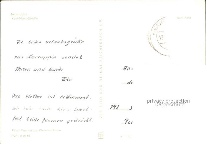 72080181 alte Postkarte Neuruppin Karl Marx Strasse Springbrunnen postalisch gelaufen Erhaltung siehe scans KatCode: 11110012068320