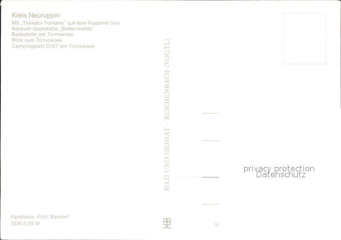 72350184 Neuruppin MS Theodor Fontane Tornowsee Campingplatz D/87 postalisch nicht gelaufen Erhaltung siehe scans KatCode: 11110012068320