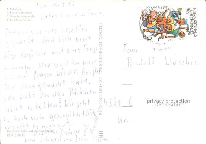 72071759 alte Postkarte Neuruppin Poliklinik Fontane Denkmal Dampferanlegestelle Karl Marx Str postalisch gelaufen Erhaltung siehe scans KatCode: 11110012068320