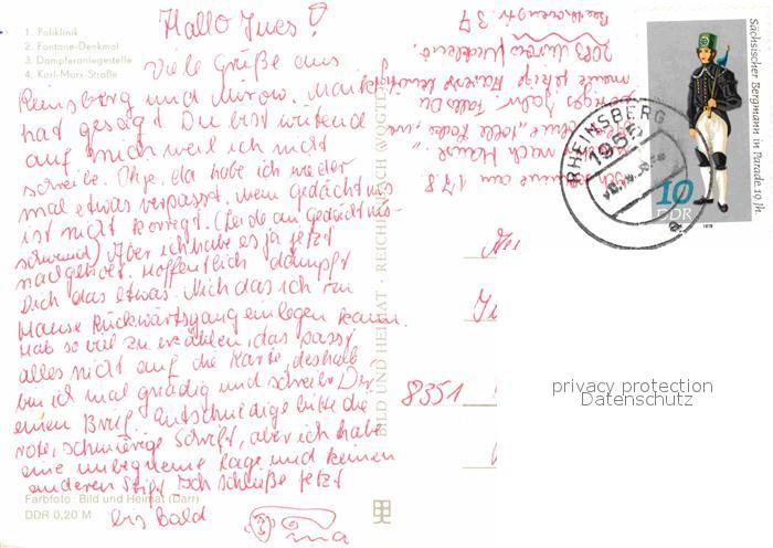 72843934 alte Postkarte Neuruppin Poliklinik Fontane Denkmal Dampferanlegestelle Karl Marx Strasse postalisch gelaufen Erhaltung siehe scans [AndreD76] KatCode: 11110012068320